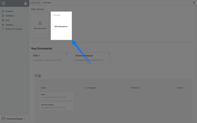 The next time you enter your war room, you will see a template next to the blank document button.