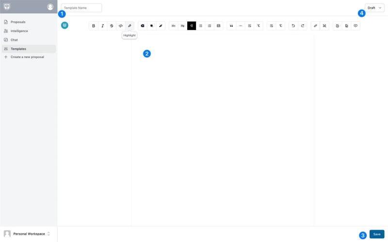 - Enter your template content using the Rogue editor. An easy way to kickstart this is pasting from a Word document — the format transfers.