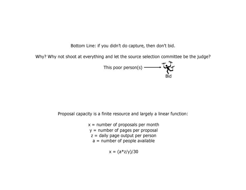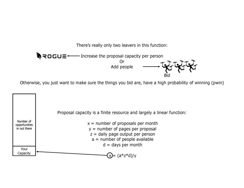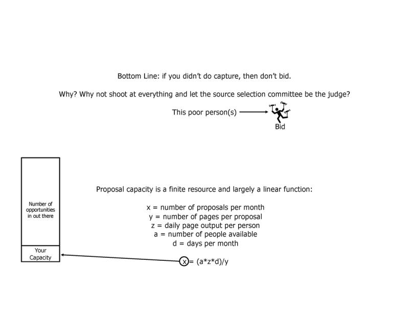 Also lets assume the average proposal page count is 50 pages, that's on the low end of real proposals. Once you add in resumes, cost volumes, price proposals, a typical prop can be well over a hundred pages.