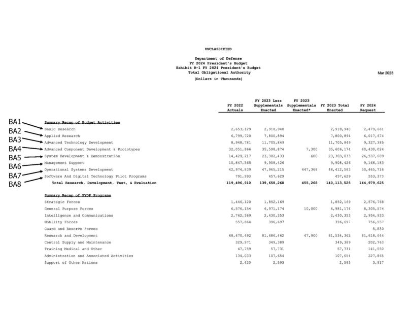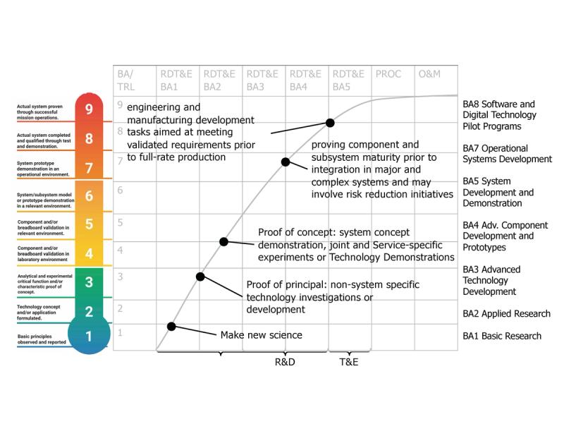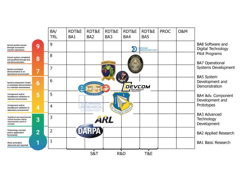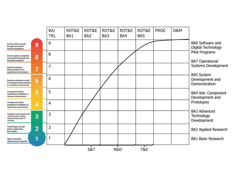 And there are different "Budget Activities", some fund for fundamental research, others fund prototype maturation. Different organizations have different pots of RDT&E, for instance, DARPA doesn't have BA 4 and 5, SOCOM S&T does, so not all S&T orgs are the same.