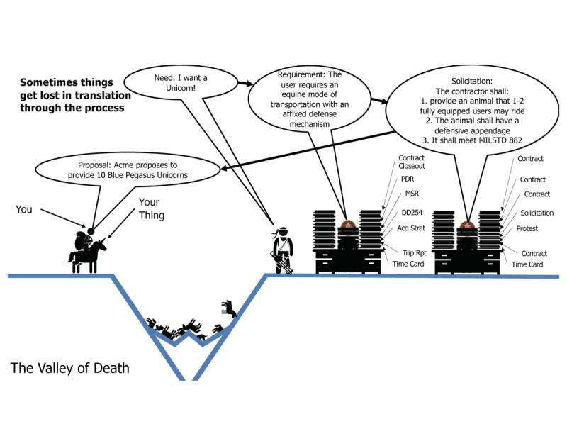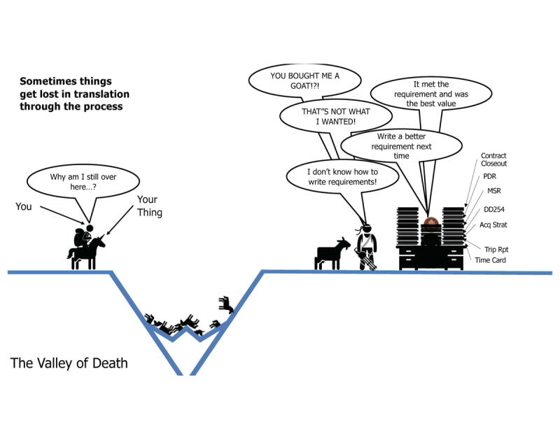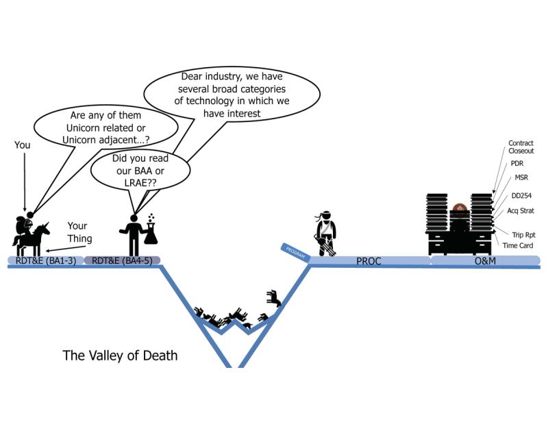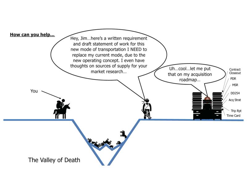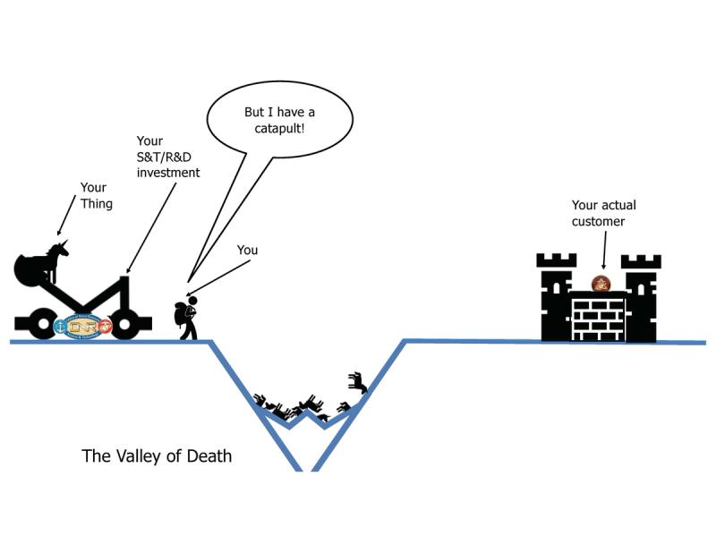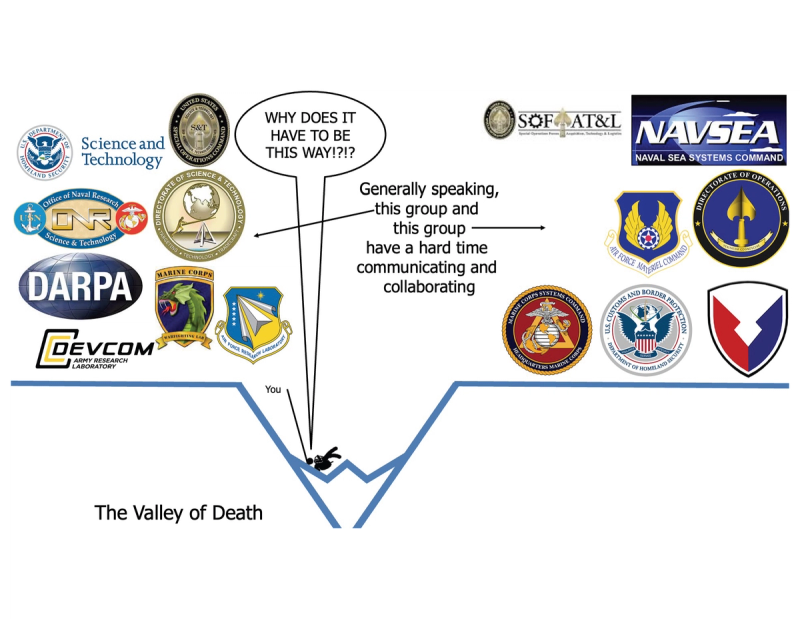 The valley of death is the chasm of technology transition from S&T/R&D organizations and the acquisition organizations they are built to serve.