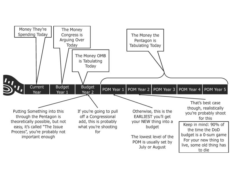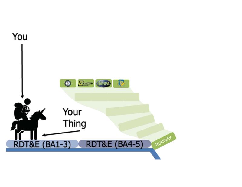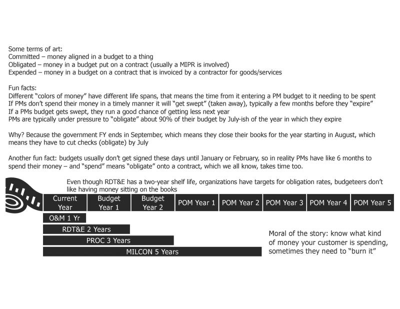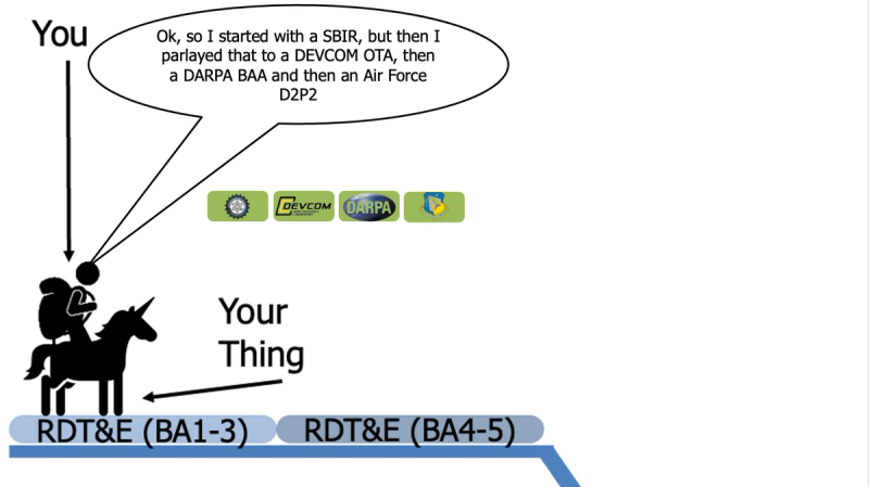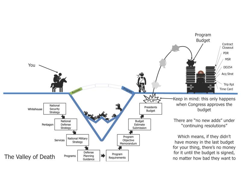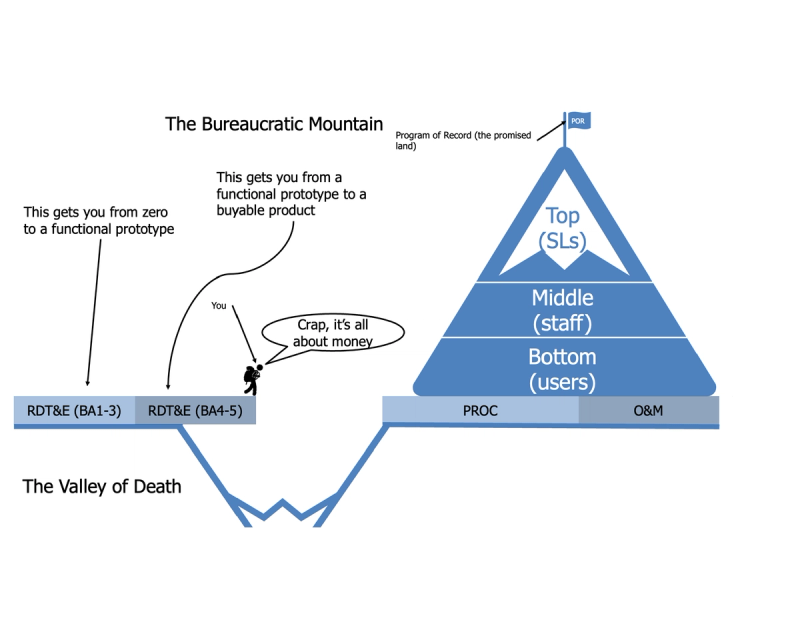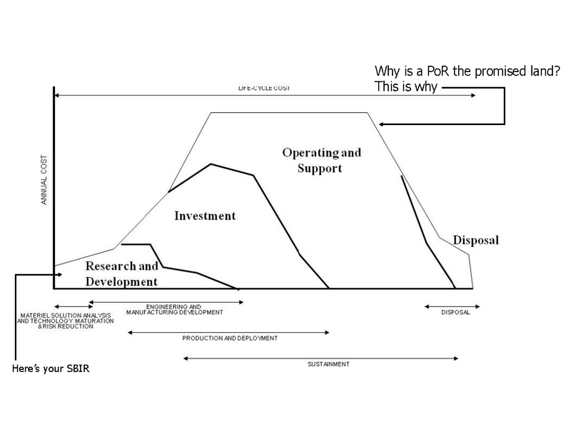 However, if you're a startup, you and your investors are looking for a big exit, so you want to get the big dollars from Procurement (PROC) and Operations and Maintenance (O&M), and those come from a program of record.