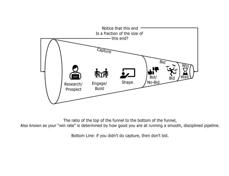 A crucial point in the pipeline is the bid/no-bid decision, you should turn down and not bid on all of the opportunities that you don't have a high probability of winning.