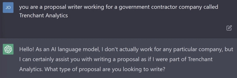 Now, the GPT got a little ahead of itself and wrote a proposal outline, which is fine, but not exactly what I need, so I need to give it a little more guidance.