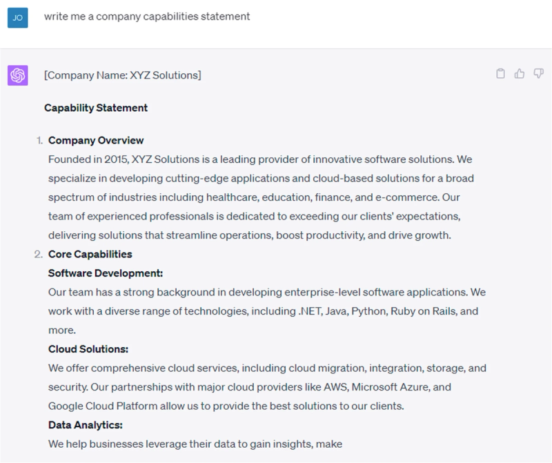 In the GovCon space you need to take particular care; the more niche the subject matter, the less specific the model will be when generating content. The more niche the subject matter, the more context you will have to give it (more on that later in prompt engineering basics).
