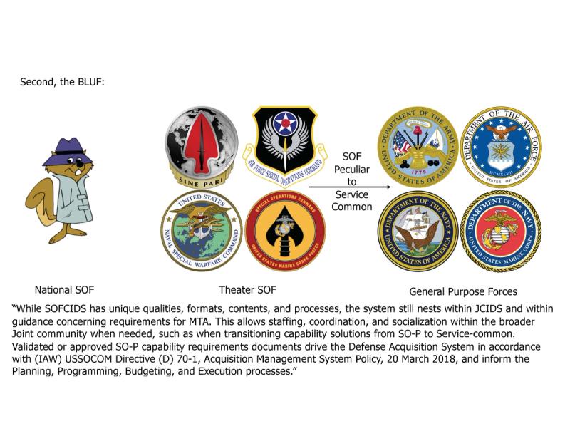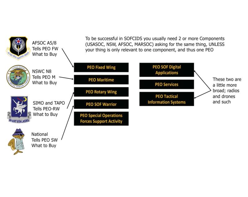 If you want to get to sell to a big SOCOM program of record, you generally have to get more than one component to support a requirement for your thing. So you got to get like Naval Special Warfare, you got to get the Navy SEALs and the Green Seals on board to buy your thing. It could be a radio, it could be a new pocket knife. You typically have to get more than one of them to agree that they need your capability. That's kind of how the SOFSIDS process works.