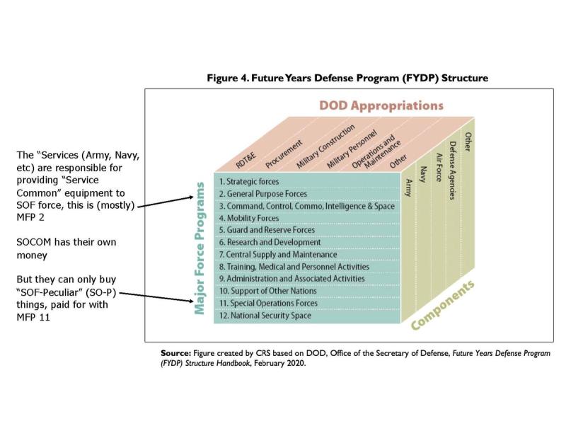 Special operations, SOCOM specifically, has what they call MFP11. Major force program 11, and those MFP11 dollars can only be spent on things that are SOF-peculiar, they have to be unique to a special operations mission or else SOCOM is not allowed to spend those dollars.