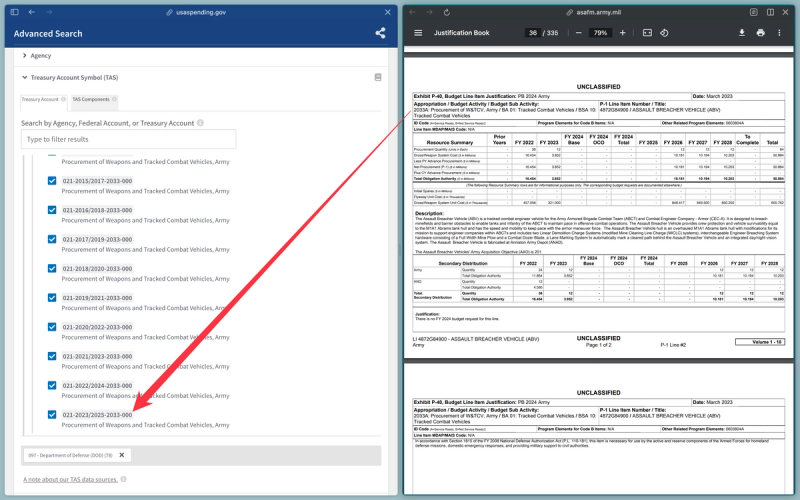 This can also enable you to backwards trace to the J-Books and see what the Congressionally established program budgets are for those programs and their contracts.