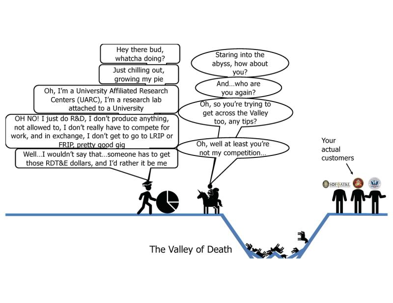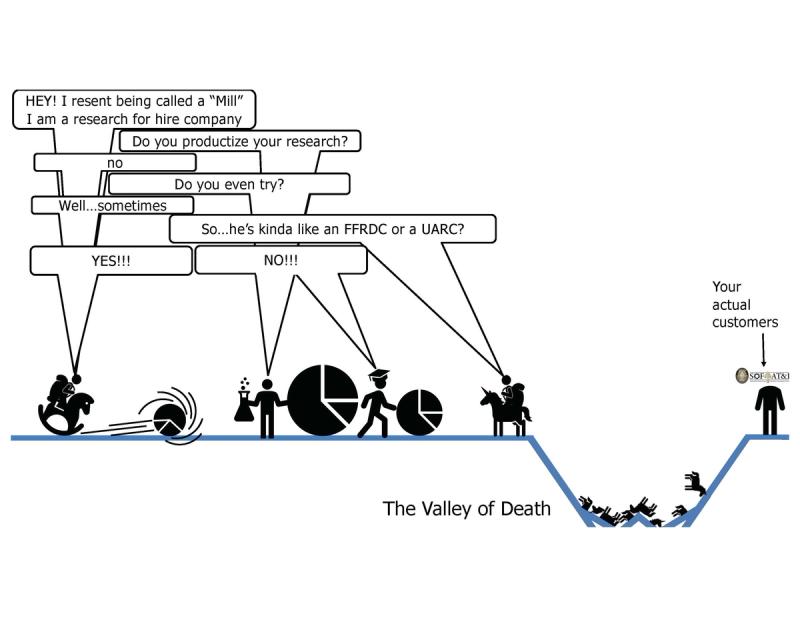 There is an inherent misalignment on incentives between government research organizations (DARPA, ARL, AFRL, NRL, etc) and their customers who ultimately benefit from commercialization.